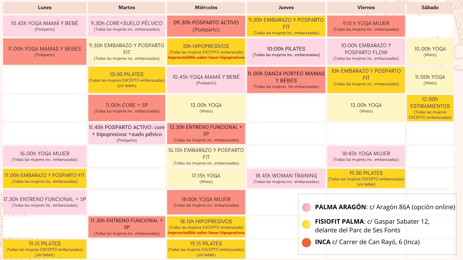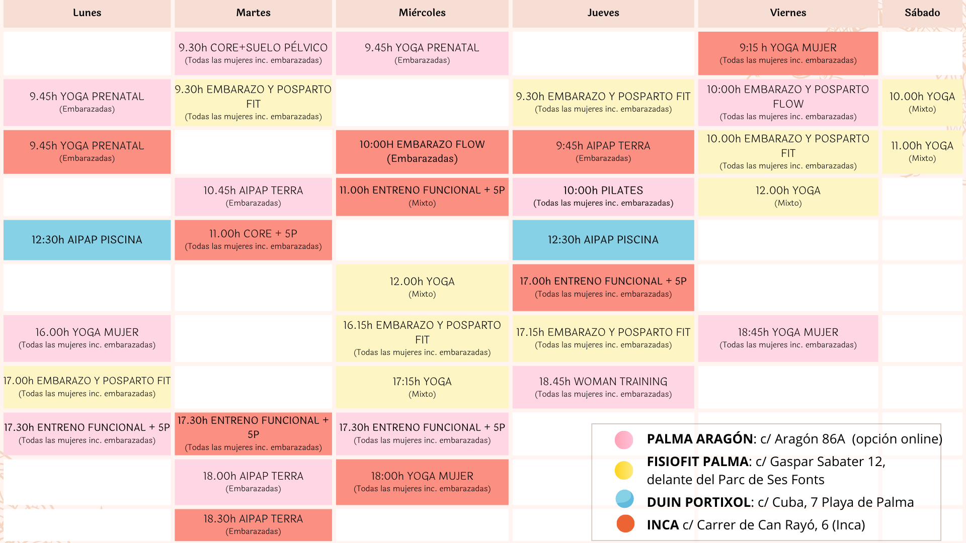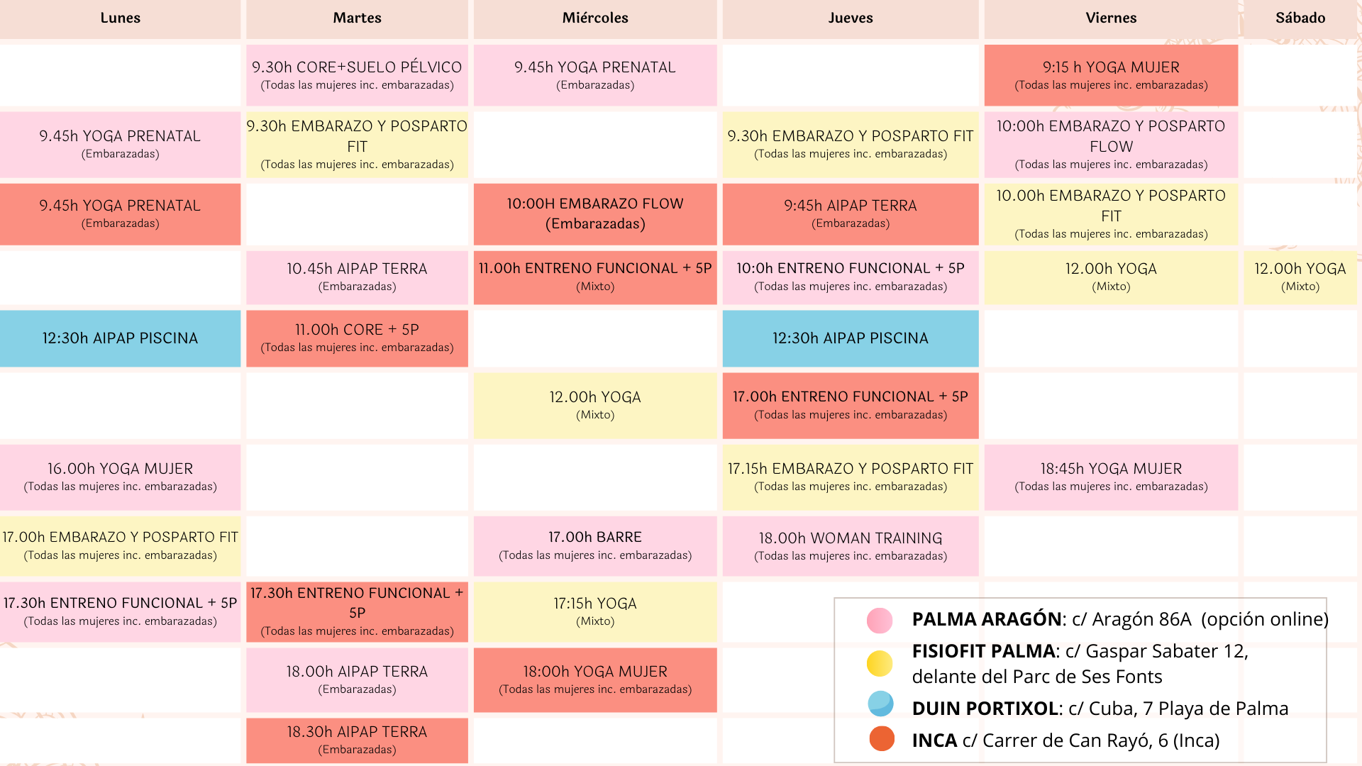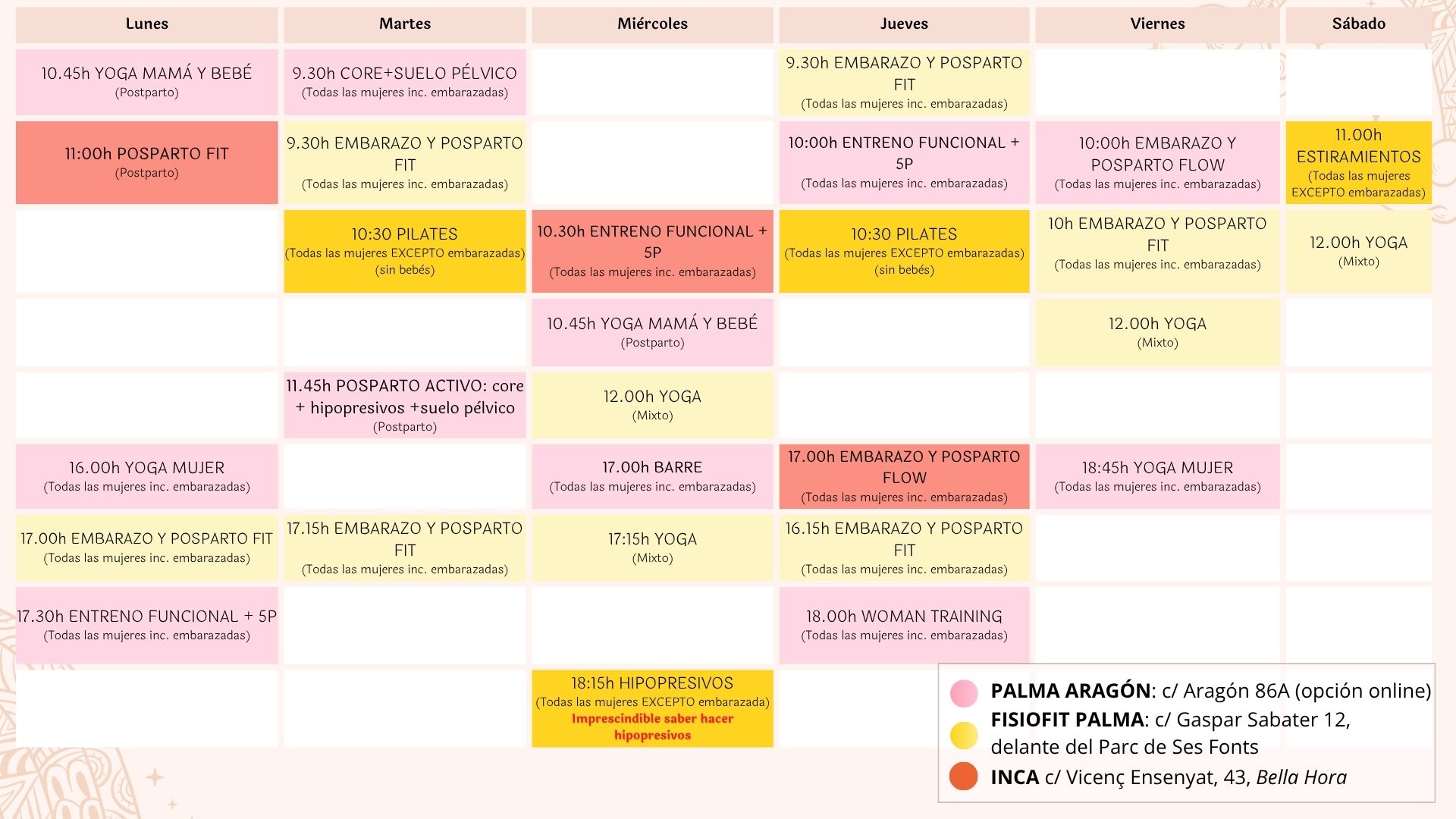 Puedes apuntarte tanto presencial o en directo online (vía enlace de zoom), ideal si vives fuera de Palma. Si ves que una clase está llena, no te preocupes, aún así podrás asistir online o apuntarte a la lista de espera presencial.